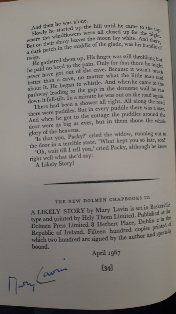 This copy is a limited edition hardback of fifteen hundred copies. Two hundred copies were signed by the author. Our copy is one of the two hundred signed by Mary Lavin.