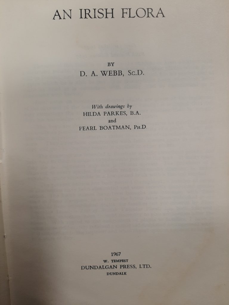 This handbook will provide the student or keen amateur with a clear and reliable means of identifying those plants which grow wild in Ireland. The book contains details of the plants of Ireland and has many black and white illustrations. The illustrations for this 1967 edition were done by Hilda Parkes and Pearl Boatman.
