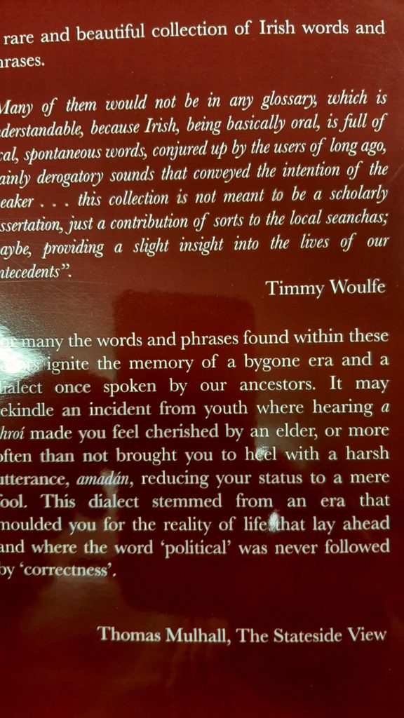 The English translation of the title is As tough as Woodbine. Timmy Woulfe has put together a collection of of old Irish words and phrases. This is a rare and beautiful collection of Irish words and phrases.