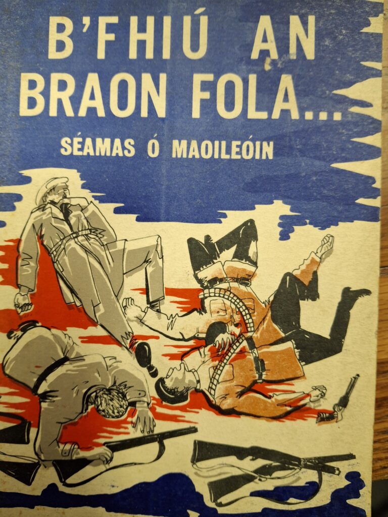We are lucky to feature B’fhiú an Braon Fola le Seámas Ó Maoileóin and its English translation Blood on the Flag. The translation was carried out by Patrick Twohig.