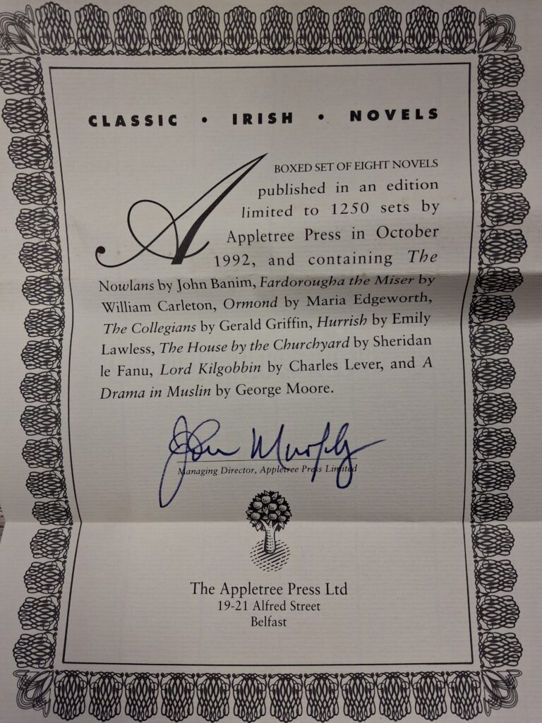 The box set includes a certificate of authenticity signed by John Murphy of The Appletree Press.