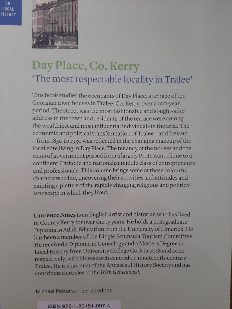 Day Place, Tralee has been described as “The most respectable locality in Tralee”. This book studies the occupants of Day Place, a terrace of ten Georgian town houses in Tralee, over a 100 year period.