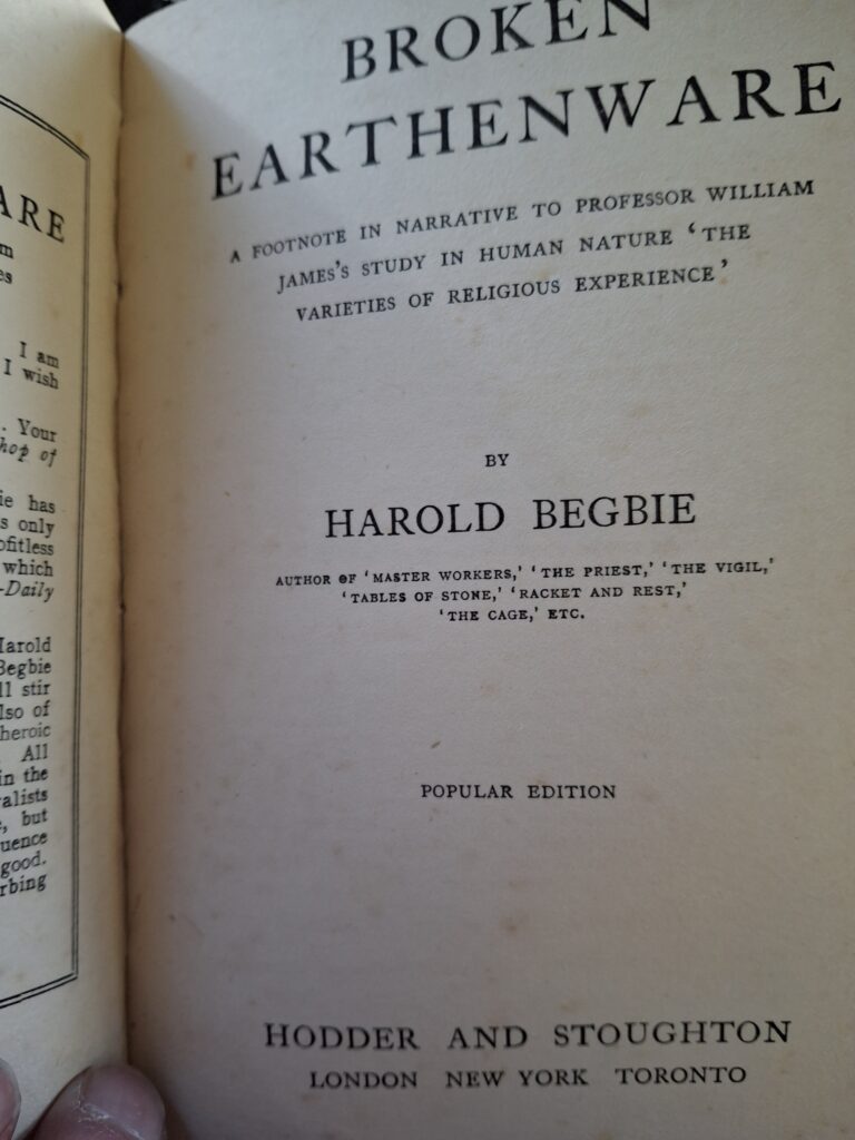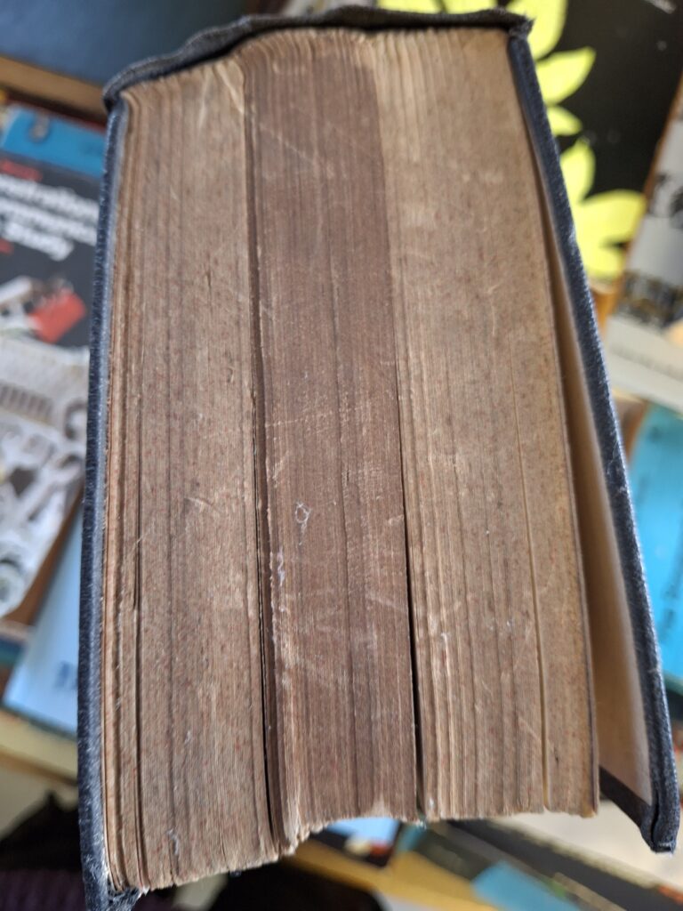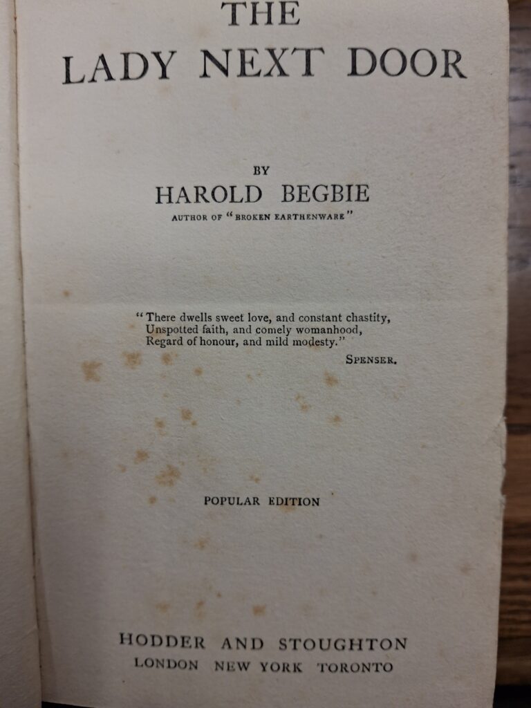 We are featuring an unusual offering today. This book was bound/made up and contains three distinct volumes. Two of the books are by Harold Begbie and the third by Max O’Rell. The book was bound by a previous owner. The two Begbie books are first and third in the volume. The O’Rell book is sandwiched in the middle. Interestingly the O’Rell book is printed in a totally different font than the other two.