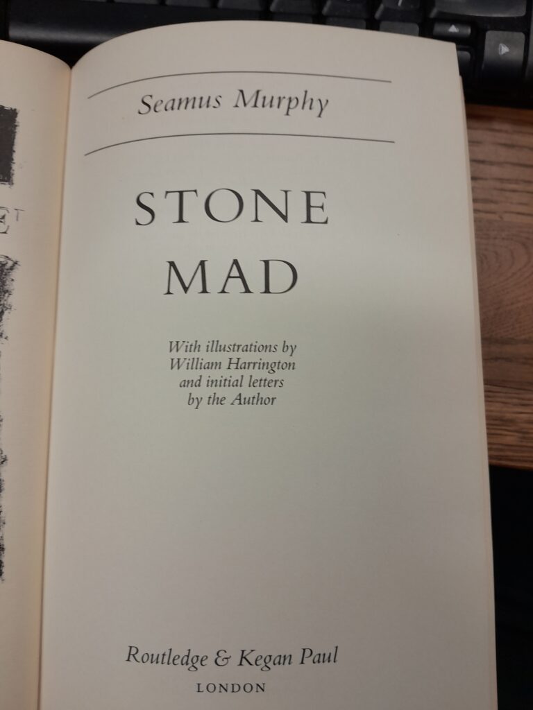 Seamus Murphy carved his own niche to become one of the most respected sculptors in his field. Stone Mad is an account of his days as an apprentice where he learned to work the stone and discovered that there is no regularity in nature.