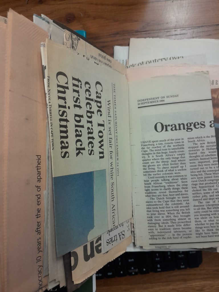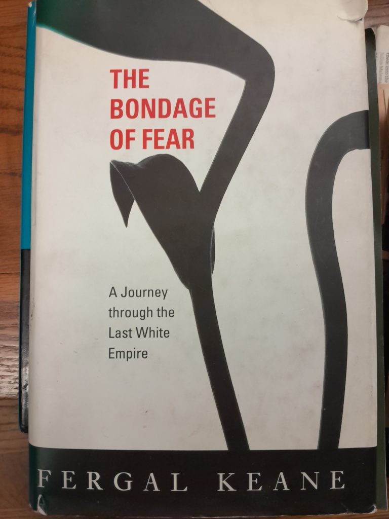 The Bondage of Fear was written by the BBC’s African correspondent Fergal Keane. Our copy has 25 (approx.) articles about the end of apartheid which the previous owner cut from various newspapers. There is a DVD called Endgame in South Africa also included.