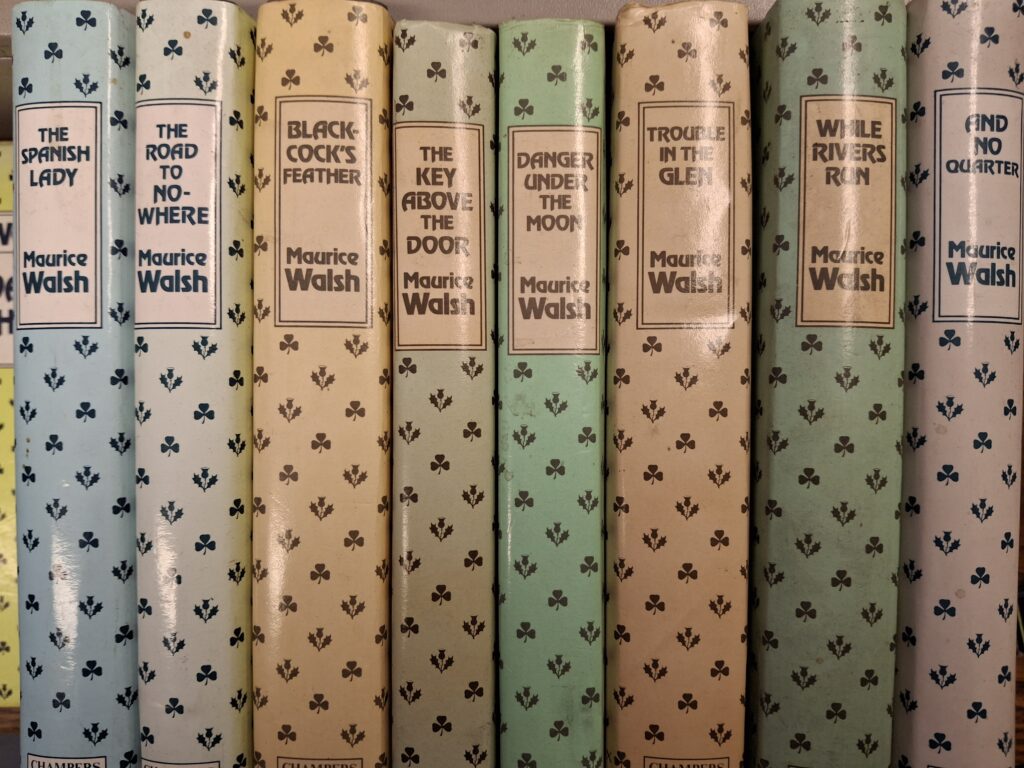 We have sourced a number of Maurice Walsh novels. They are all in hardback. These novels were published by Chambers and the dust jackets have either the Shamrock or Thistle motif.