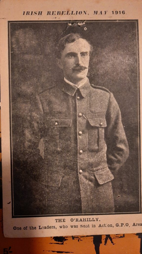 We have included an original postcard featuring The O’Rahilly. The postcard was printed by Powel Press, Dublin after the O’Rahilly’s execution in 1916.