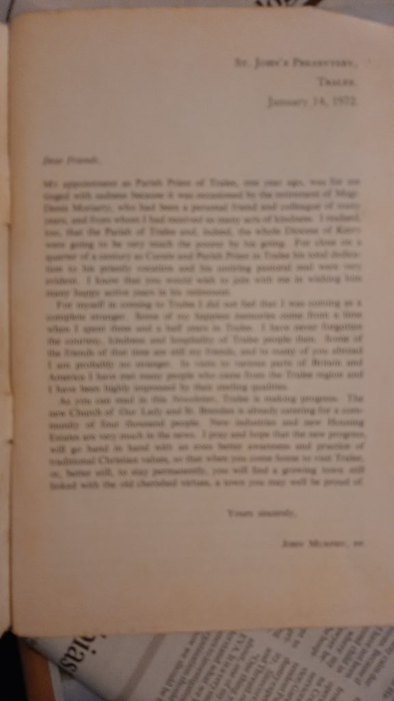 This is a rare surviving newsletter from 1972 featuring Tralee. There is an introduction from Fr. John Murphy PP of St. John’s Church.